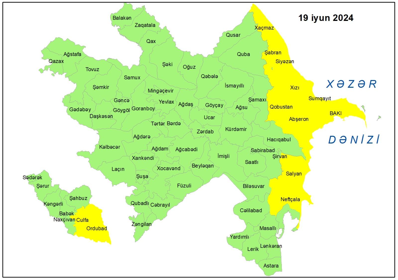 İyunun 19-da Bakıda və Abşeron yarımadasında, eləcə də bəzi rayonlarda küləkli hava şəraiti ilə bağlı Milli Hidrometeorologiya Xidməti tərəfindən sarı xəbərdarlıq edilib.