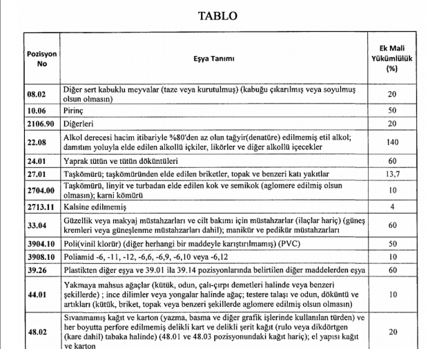 Qərara görə, Birləşmiş Ştatlardan alınan avtomobil, spirtli içki və tütün məmulatları da daxil olmaqla, müəyyən malların idxal rüsumları artırılır.