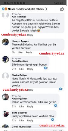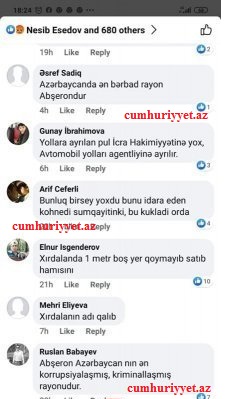 Anaxeber.info məlumat verir ki, bu şərh və narazılıqlar sosial şəbəkələrdə Abşeronun icra başçısı ilə bağlı yazılanların az hissəsidir. Hazırda respublikanın heç bir regionundan bu dərəcədə ifrat dozalı etiraz yoxdur.