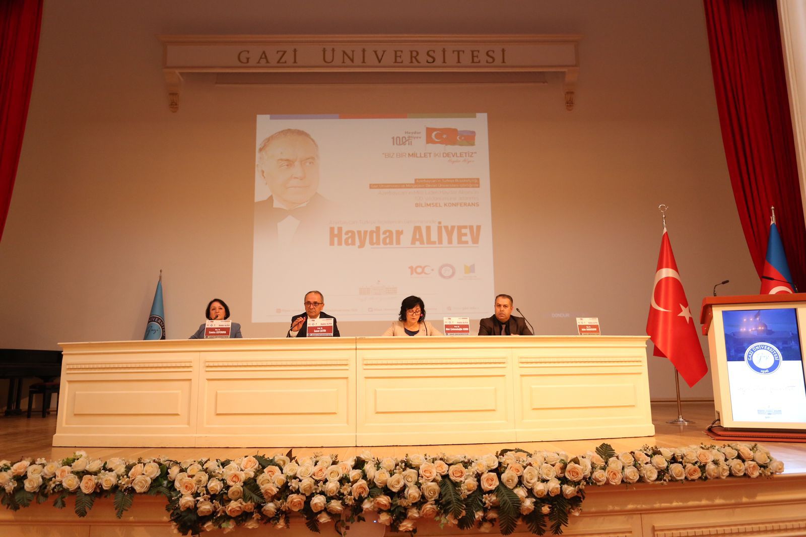 Sonra konfrans Qazi Universitetinin professoru Alev Çakmakoğlu Kurunun moderatorluğu ilə paneldə davam edib. Paneldə MDU alimlərindən dosent Esmira Cəfərova "Heydər Əliyev və "Bir millət, iki dövlət” anlayışı” və dosent Asim Məmmədov "Heydər Əliyevin Türk Dünyasının birliyinə töhfələri” mövzusunda, Qazi Universiteti alimlərindən professor İsmet Çetin "Heydər Əliyev dönəmi və Türkiyə-Azərbaycan mədəni əlaqələri” və professor Alev Çakmakoğlu Kuru "Azərbaycanın sevinci bizim sevincimiz, kədəri bizim kədərimizdir” və "Bir millət, iki dövlət” sözlərinin Türk sənətində izləri” mövzusunda məruzələrlə çıxış ediblər.
