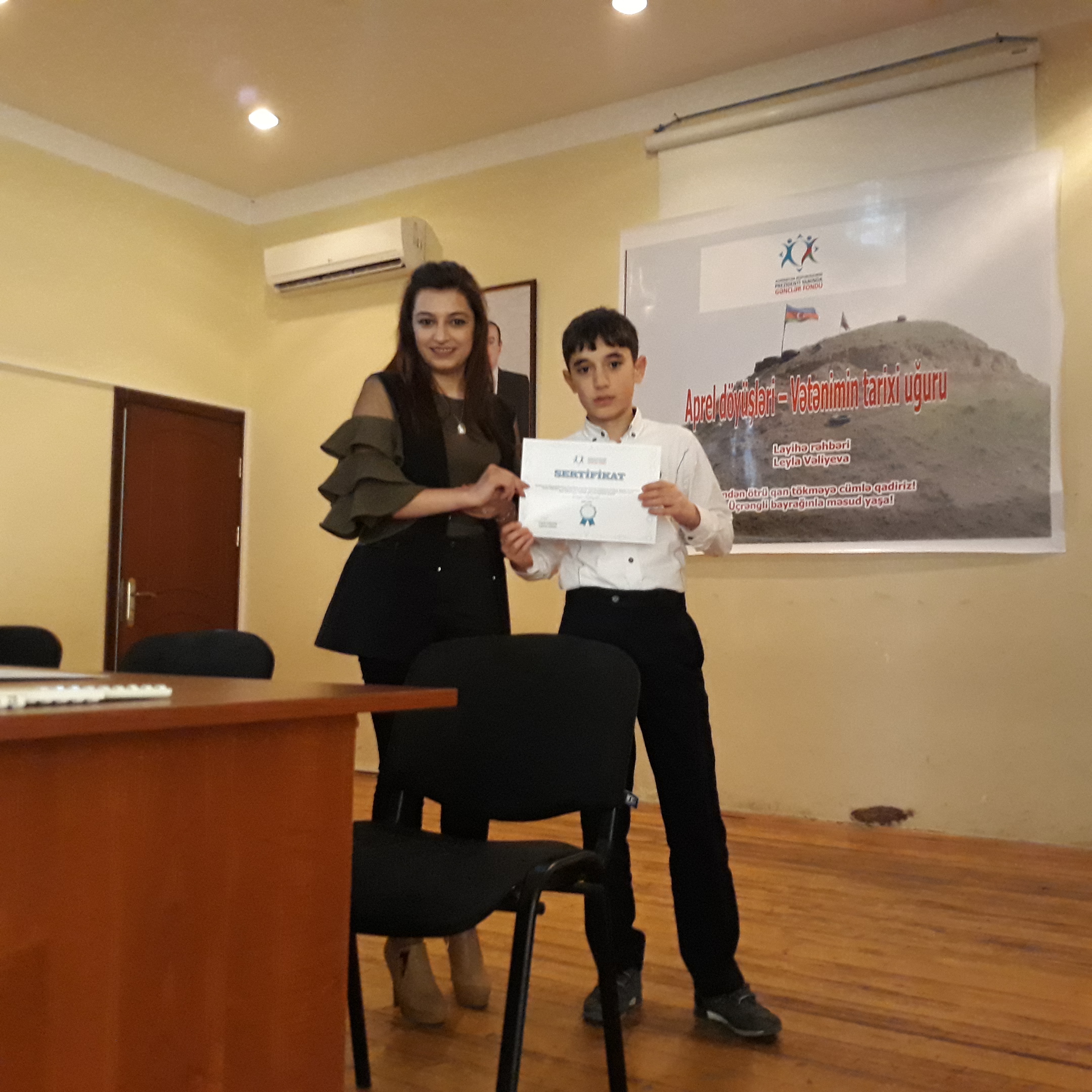 Azərbaycan Respublikasının Prezidenti yanında Gənclər Fondunun maliyyə dəstəyi ilə Bakı şəhərində icra edilən "Aprel döyüşləri – Vətənimin tarixi uğuru” layihəsinə yekun vurulub. Layihə Gənclər Fondunun elan etdiyi X qrant müsabiqəsinin fərdi şəxslər üçün olan kateqoriyası üzrə qalib gəlmiş Leyla Vəliyeva tərəfindən icra edilirdi. Layihənin əsas məqsədi yeniyetmələrdə vətənpərvərlik hisslərinin gücləndirilməsi idi.