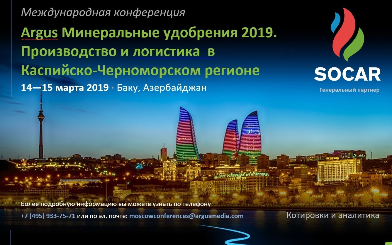 7News.Az xəbər verir ki, "Argus mineral gübrə 2019. Xəzər və Qara dəniz regionunda Hasilat və Logistika” adlı konfransın 2019-cu il martın 14-15-də "Boulevard Hotel Baku" otelində keçirilməsi nəzərdə tutulub.