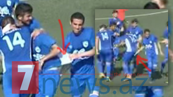 Mustafazadəni təbrik etməyə gələn komanda yoldaşlarından biri əlini onun arxasına soxub və uzun müddət bu, davam edib. Epizodu Peşəkar Futbol Liqasının təqdim etdiyi videoda 1:25-ci saniyədə görmək mümkündür. /sportnet.az