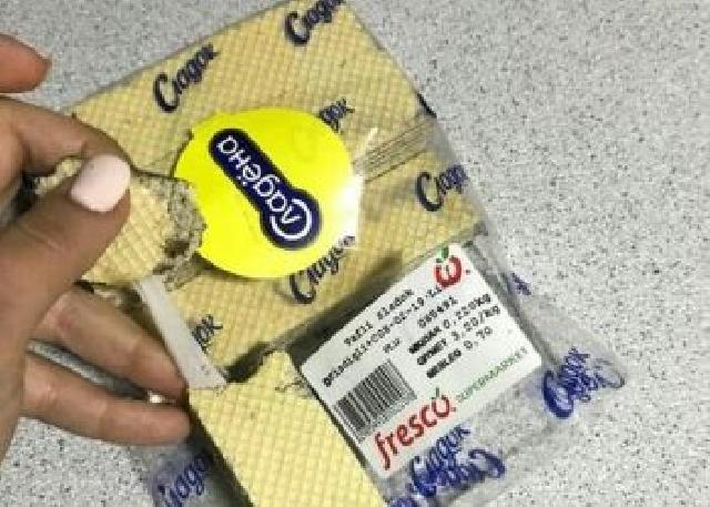 Azərbaycanda istehlakçının aldığı vaflidən rezin əlcək çıxdı.