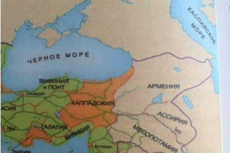 7news.Az xəbər verir ki, 10-cu sinif şagirdləri üçün rus dilindəki "Azərbaycan tarixi" kitabında yer almış xəritədə dənizdən dənizə "Böyük Ermənistan" dövlətinin mövcud olduğu göstərilib. Həmin xəritəyə əsasən, Azərbaycanın, İranın, Gürcüstanın və Türkiyənin ərazilərinin bir hissəsi guya vaxtilə Ermənistan adlı dövlətin tərkibində olub.