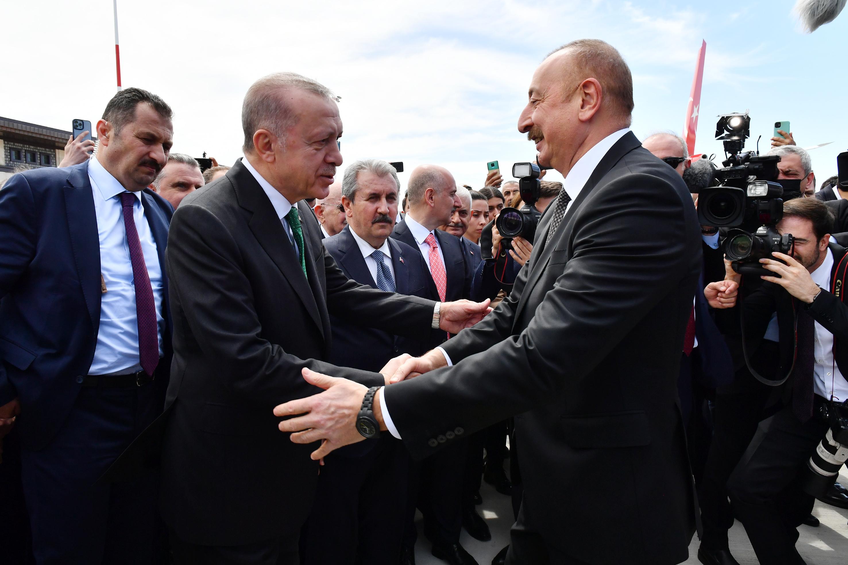 Azərbaycan Prezidenti İlham Əliyev və Türkiyə Prezidenti Rəcəb Tayyib Ərdoğan mərasimdə iştirak ediblər.