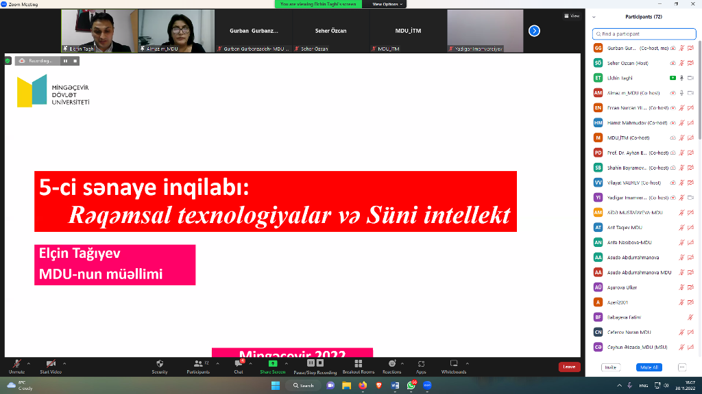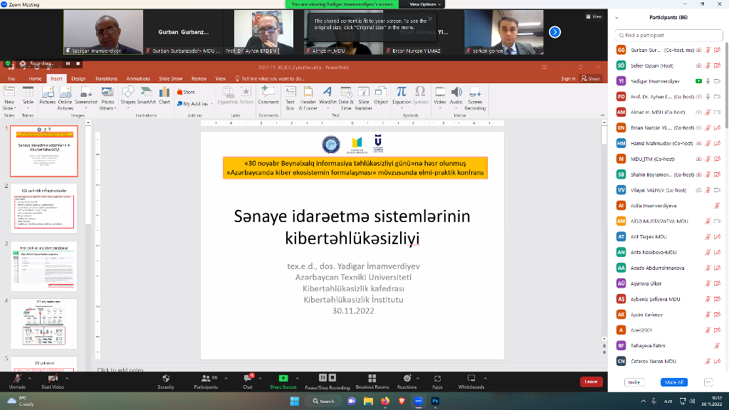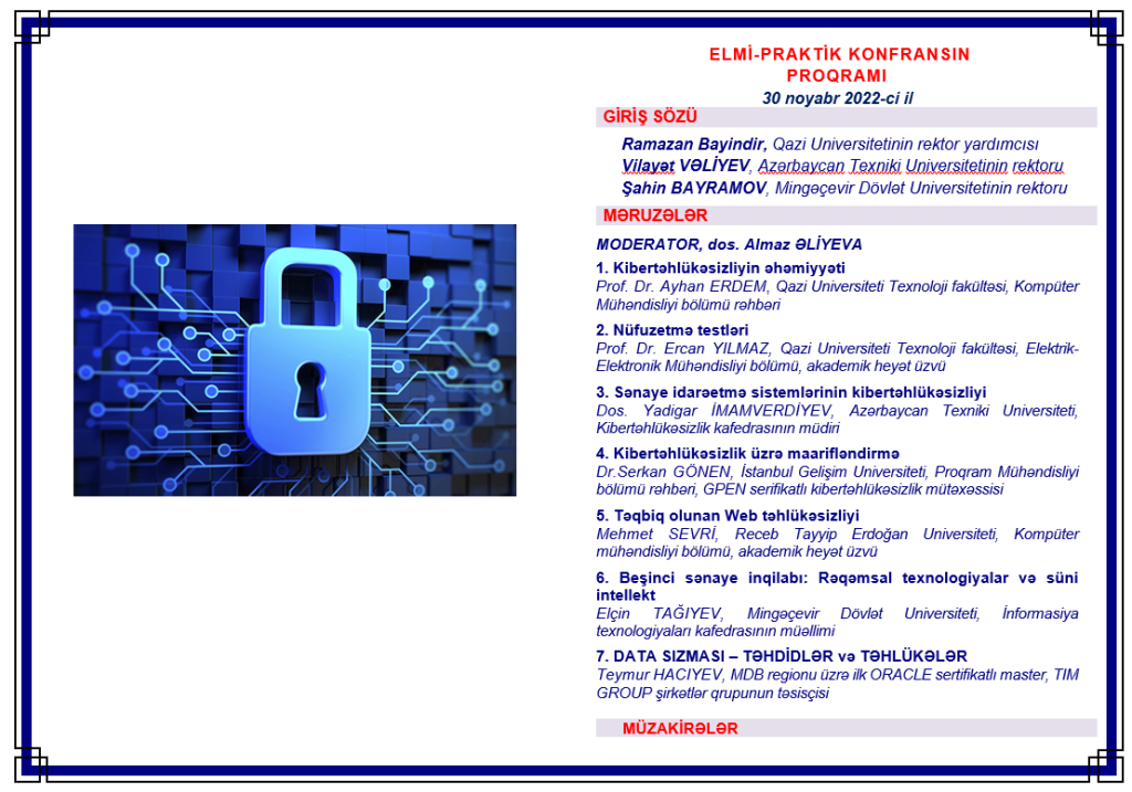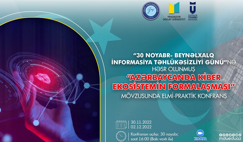2022-ci ilin noyabrın 30-da Türkiyənin Qazi Universiteti, Azərbaycan Texniki Universiteti (AzTU) və Mingəçevir Dövlət Universitetinin (MDU) birgə təşkilatçılığı ilə "Azərbaycanda kiber ekosistemin formalaşması” mövzusunda elmi-praktik konfransın işinə başlanılıb. Dekabrın 2-dək davam edəcək konfrans "30 noyabr - Beynəlxalq İnformasiya Təhlükəsizliyi Günü”nə həsr olunan "İnformasiya təhlükəsizliyi günləri” çərçivəsində keçirilir. "Zoom” platforması üzərindən onlayn formatda təşkil edilən konfransda hər üç universitetin akademik və inzibati heyət üzvləri, tələbə, magistrant və doktorantları iştirak ediblər.