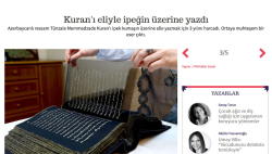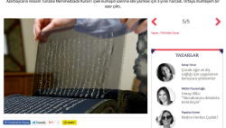 Türkiyənin ən nüfuzlu xəbər portallarından hesab edilən "Milliyet" Tünzalə Məmmədzadənin ipəkdən hazırladığı Qurani-Kərim haqda "Bu Kuran dünyada, sadece, bir tane" başlığı ilə yazı dərc edib.