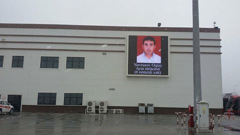 7News.az xəbər verir ki, Oqtay Novruzovun  şəkili "BakuBus" MMC-nin Təlim Mərkəzinin binasının üzərinə vurub.
