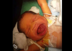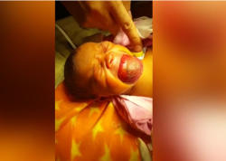 İnanılmaz dərəcədə böyük dil ilə dünyaya gələn körpə az qalsın boğulacaqdı.