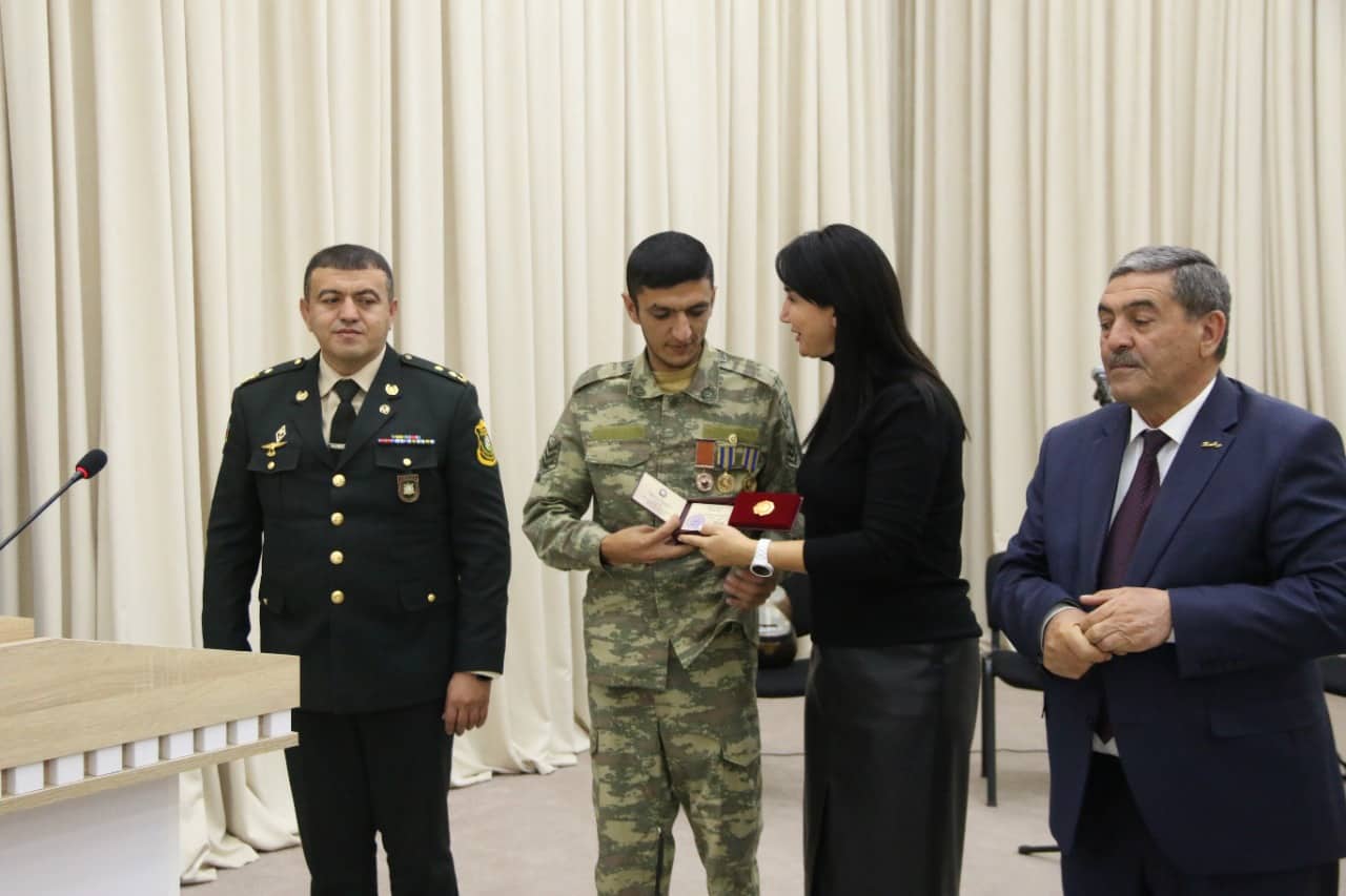 Daha sonra Səfərbərlik və Hərbi Xidmətə Çağırış üzrə Dövlət Xidmətinin Bərdə rayon şöbəsi tərəfindən Vətən müharibəsində iştirak etmiş bir neçə hərbi qulluqçuya medallar təqdim olunub.