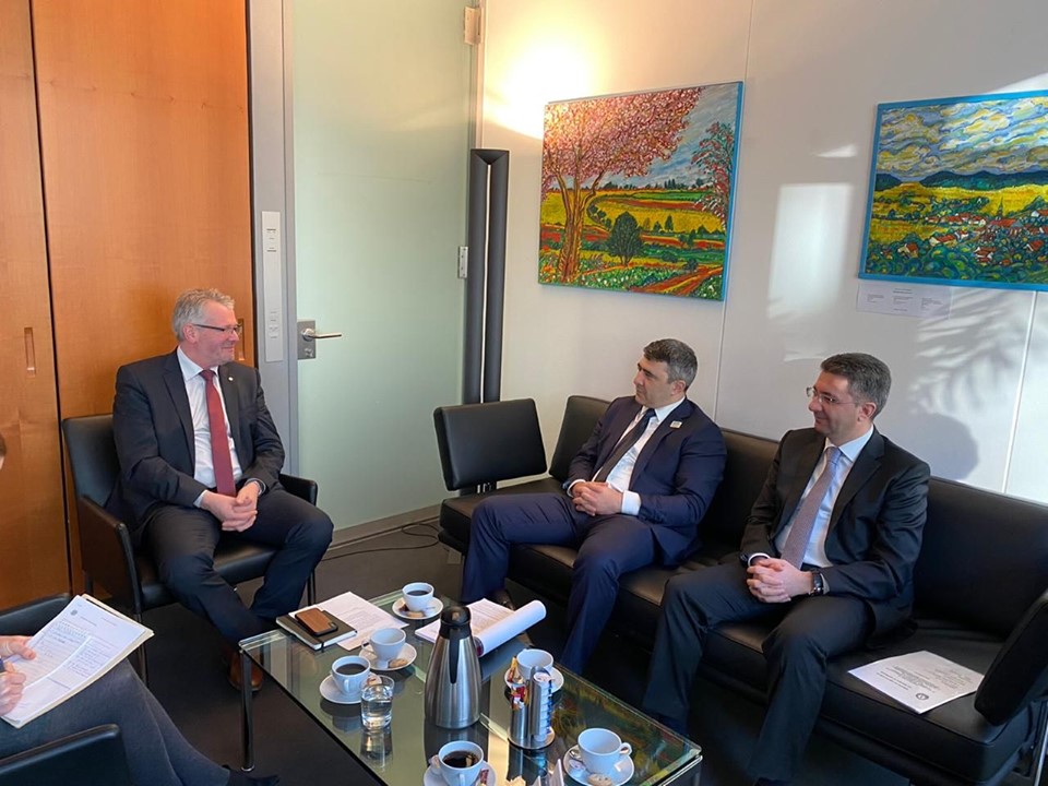 Nazir Inam Kərimov səfər çərçivəsində Almaniya Bundestaqının Ərzaq və Kənd Təsərrüfatı Komitəsinin sədri Alois Gerig ilə görüşüb. Görüşdə Azərbaycanda qeyri-neft sektorunun inkişafı barədə danışılıb, aqrar sahənin qeyri-neft sektorunun inkişafında prioritet sahə hesab olunduğu bildirilib. Bundestaqın komitə sədrinə bu istiqamətdə Azərbaycan Respublikasının Prezidenti İlham Əliyev tərəfindən həyata keçirilən islahatlar, kənd təsərrüfatının əsas inkişaf istiqamətləri, aqrar sahədə innovasiyaların, Elektron Kənd Təsərrüfatı İnformasiya Sisteminin tətbiqi, aqrar sektora dövlət dəstəyi barədə məlumat verilib. Nazir Azərbaycanda kənd təsərrüfatına dövlət dəstəyinin hər il daha da genişləndirildiyini vurğulayıb, aqrar sahənin inkişafı üçün əlverişli investisiya mühitinin yaradıldığını qeyd edib. Görüşdə Azərbaycan və Almaniyanın aqrar sahə üzrə ixtisaslaşmış ali təhsil müəssisələri və elmi-tədqiqat institutları arasında təcrübə mübadiləsinin vacibliyi vurğulanıb.