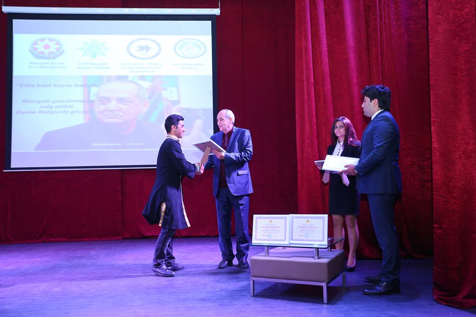 Tədbirdən sonra gənclər xalq artisti Rasim Balayevlə xatirə fotoları çəkdiriblər.