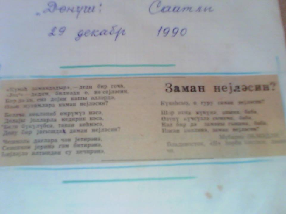 Bu müzakirədən bir il sonra mən hərbi xidmətə getdim. Amma "Goreşənlər" hər dəfə yadıma düşəndə, "Hacı dayı haqlı idi, yoxsa mən?" - deyə, düşünürdüm. Məntiqim məni inadımdan döndərə bilmirdi. Nə qədər götür-qoy etsəm də, elə hey öz fikrimdə qalırdım, Hacı dayı ilə razılaşa bilmirdim. Nəhayət, "Goreşənlər"dən 3 il sonra 1990-cı ildə hərbi xidmətdəykən, "Zaman neyləsin" adlı şeirimi yazıb Saatlı rayon "Dönüş" qəzetinə göndərdim. Doğmalardan mənə gələn məktublarda, hamının bu şeiri bəyəndiyi yazılırdı...