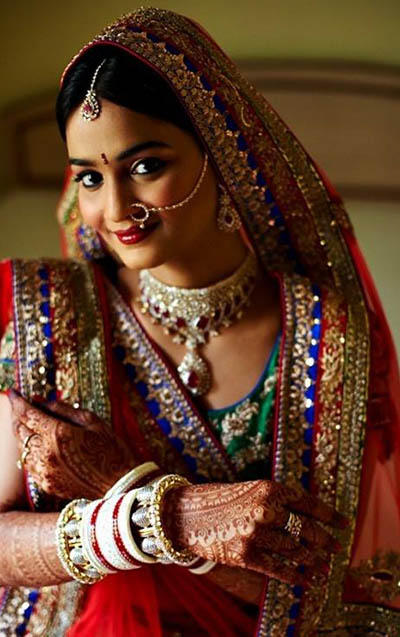 Hindistanlı gəlinlər toy günü daha çox qırmızı rəngə üstünlük verir. Ancaq onlar gəlin paltarından daha çox taxdığı zinət əşyaları, bəzəklərlə fərqlənir.