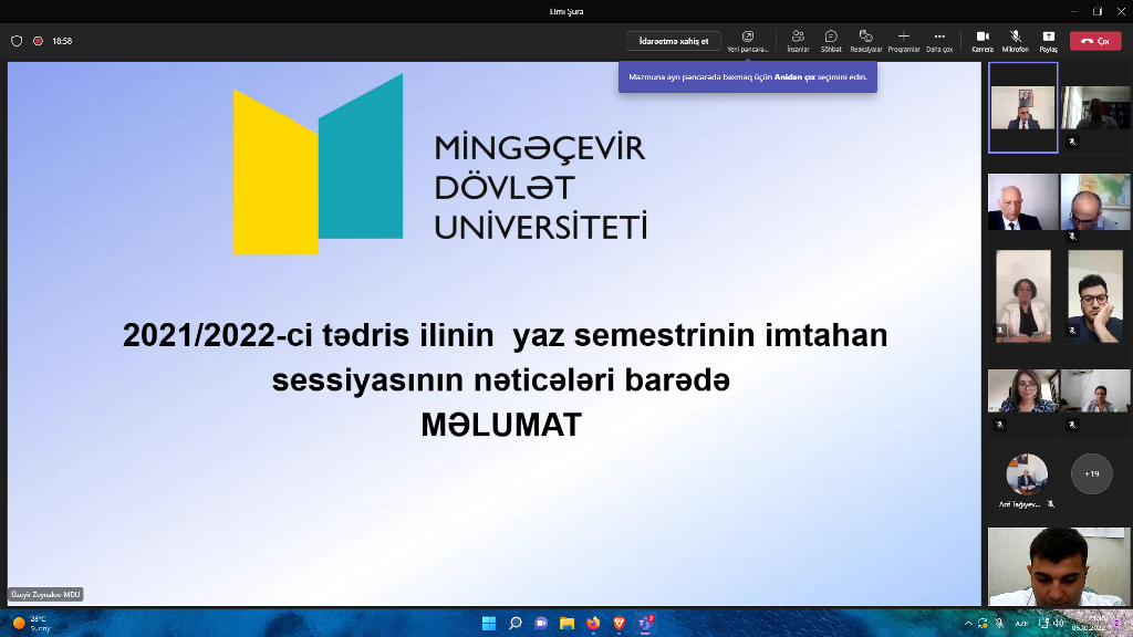 Əvvəlcə, "2022/2023-cü tədris ili üçün MDU Elmi Şurasının iş planı” layihəsi müzakirə edilib və təsdiq olunub.