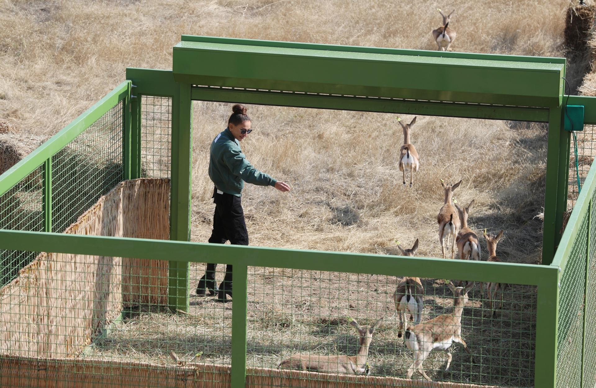 7NEWS.Az xəbər verir ki, dövlət başçısı və birinci xanım reintroduksiya layihələrinin həyata keçirilməsi çərçivəsində Cəbrayıl rayonu ərazisinə 18 baş ceyranın buraxılması mərasimində də iştirak ediblər.