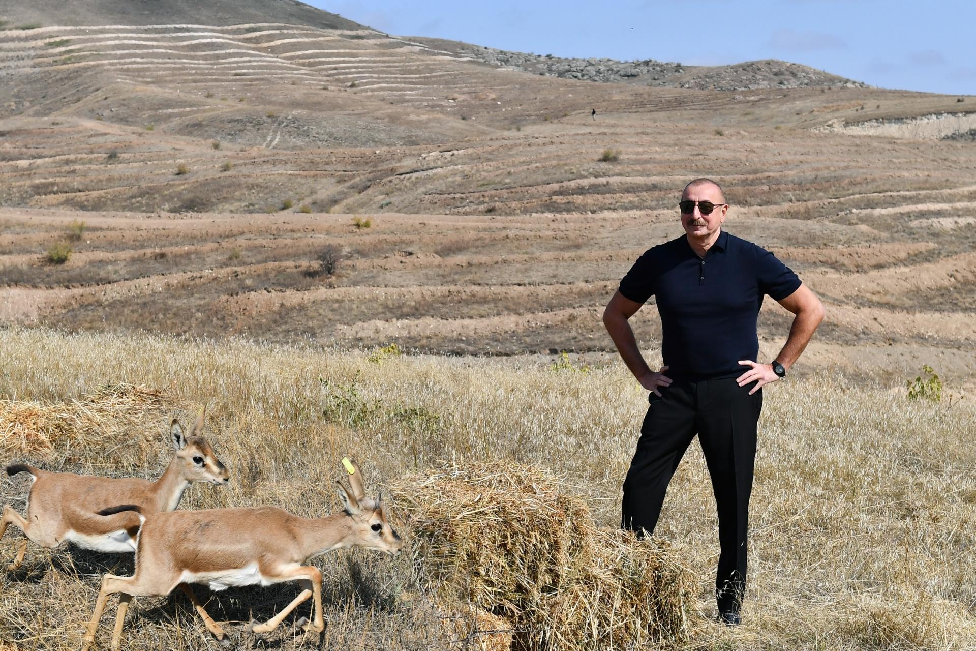 Dövləti başçısı və birinci xanım reintroduksiya layihələrinin həyata keçirilməsi çərçivəsində Cəbrayıl rayonu ərazisinə 18 baş ceyranın buraxılması mərasimində də iştirak ediblər.