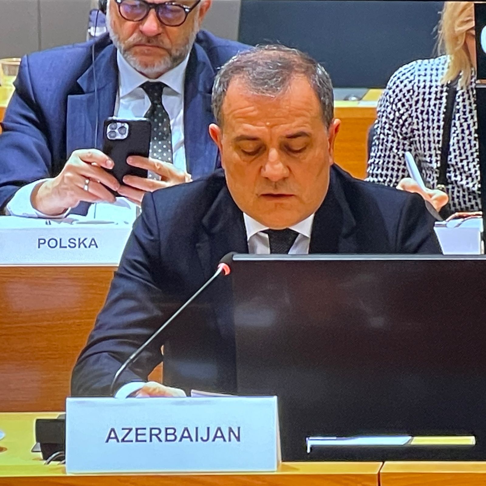Azərbaycanın xarici işlər naziri Ceyhun Bayramov Brüsseldə keçirilən Avropa İttifaqının (Aİ) Şərq Tərəfdaşlığı ölkələrinin XİN başçılarının iclasında çıxış edir.
