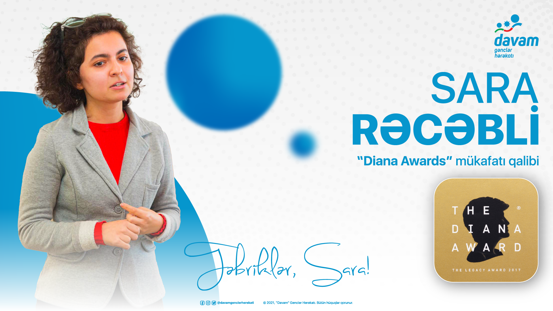"Davam" Gənclər Hərəkatının İdarə Heyətinin üzvü Sara Rəcəbli sosial aktivist və sosial sahibkarlar üçün təsis olunan Böyük Britaniyanın şahzadəsi Diana Spenser adına mükafata layiq görülüb. O, bu mükafatı qazanan ilk azərbaycanlı sosial sahibkardır.