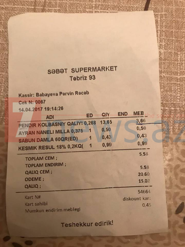 Məsələni diqqəti saxlayacaq, "Səbət” marketlər şəbəkəsində qeydə alınan növbəti videofaktımızı da oxucularımıza təqdik edəcəyik.