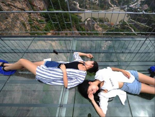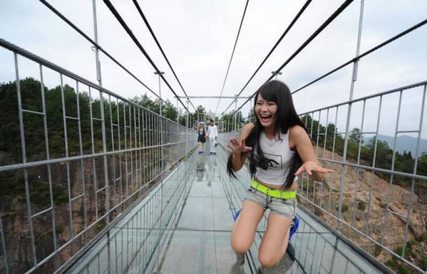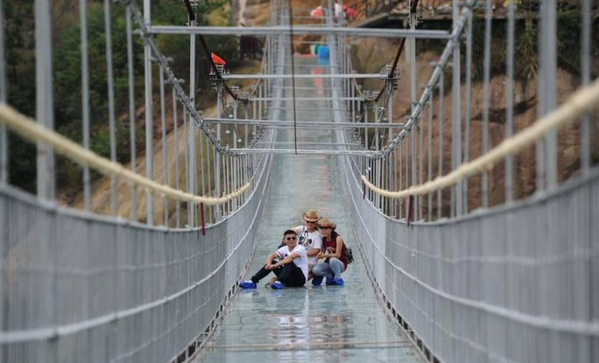 Çinin Xunan əyalətində döşəməsi şəffaf şüşədən olan asma körpü çəkilib.