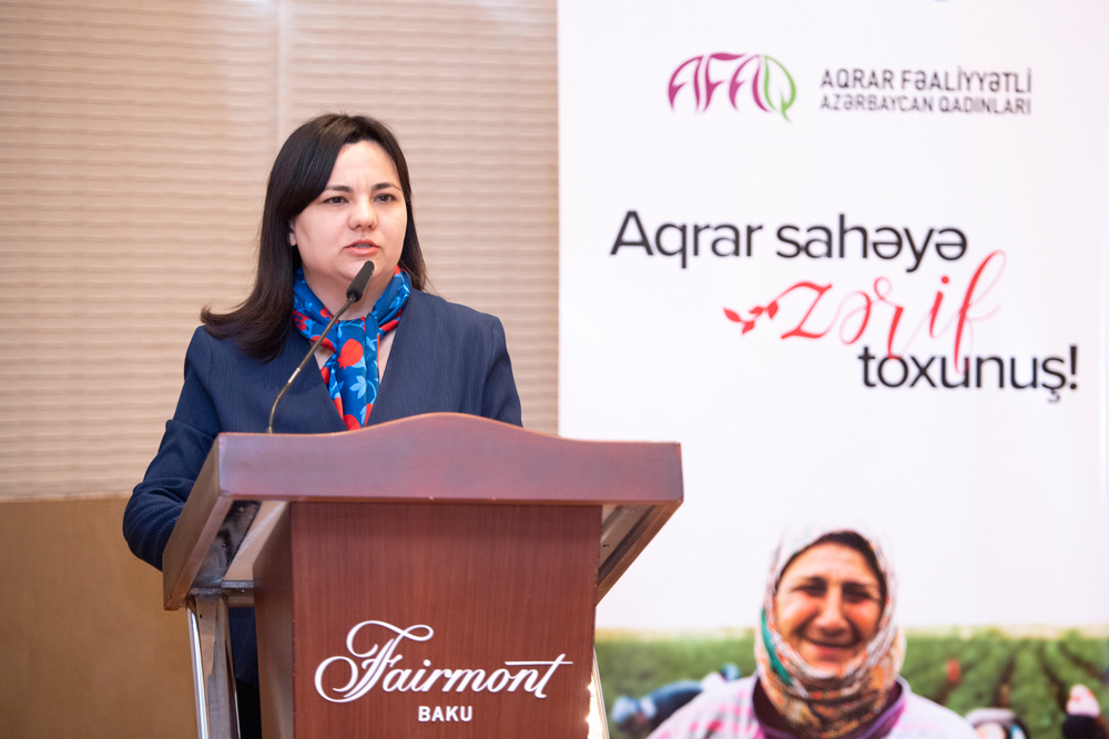 "Bu gün qadın fermerlər kənd təsərrüfatındakı məşğulluğun təxminən 50%-ini təşkil edir. Ancaq qadın fermerlərin bilik və informasiyalara çıxışı azdır və bu cəmi 2 faiz təşkil edir. Bu layihədə qadın fermerlərin gördükləri işlərin daha da yaxşılaşdırılması, onların bilik və bacarıqlarının artırılması, eyni zamanda istehsal resurslarına, xüsusilə də kredit kimi maliyyə resurslarının əlçatanlığı üçün onların bazara çıxışına dəstək olunacaq, bununla da onların gəlirlərinin artırılmasına çalışacağıq”.