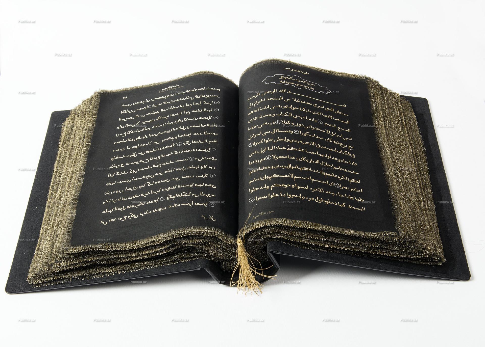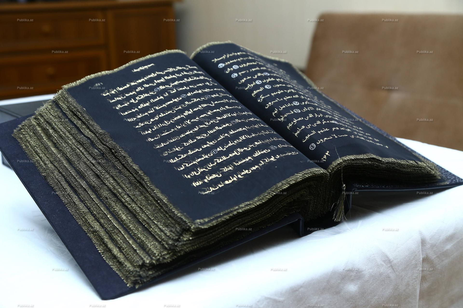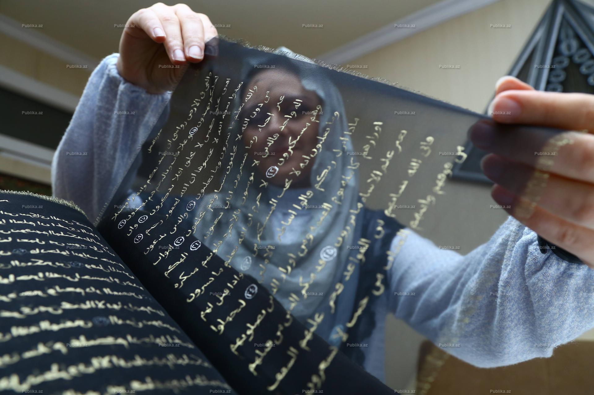 - Bəli haqlısınız. "Qurani-Kərim”i işləməyə başlamazdan əvvəl çox tərəddüd etdim. Qərar verə bilmirdim. Əmin idim ki, məndən əvvəl heç kim bunu etməyib. Ancaq istər-istəməz məsuliyyətli işdir. Bir anlıq düşündüm ki, bunun öhdəsindən gələcəm. Anam mənim bütün sosial məsuliyyətdən uzaq qalmağıma yardımçı oldu. Diqqətimi yalnız bu işin üzərində topladım. Yarımçıq qalmasından, mənəvi itkidən çox ehtiyatlanırdım. Bilirsiniz ki, ipək kitabın eni 29, uzunluğu isə 33 santimetrə yaxındır. Kitabın ərsəyə gəlməsində 50 metrdən çox ipək parça istifadə olunub. Üç ilə başa gələn kitab ümumilikdə 614 səhifədən ibarətdir.
