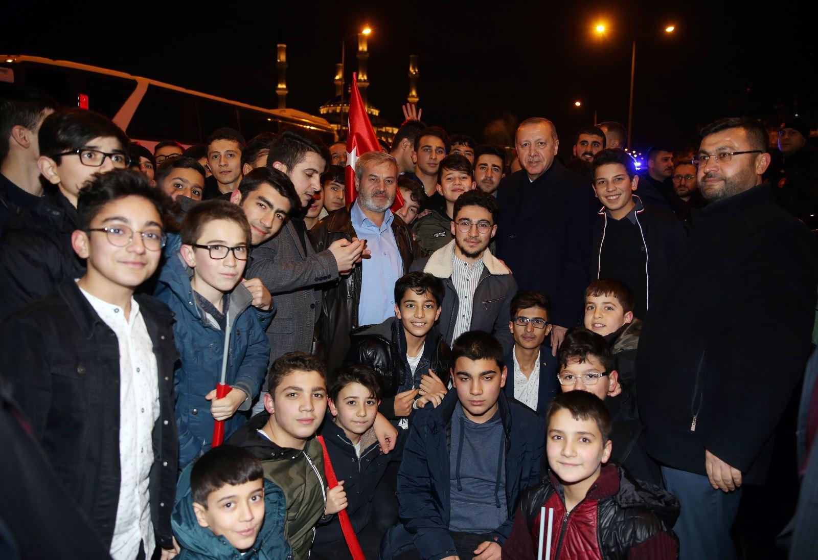 Anım mərasiminə qatılan tələbələrin yolda avtobus gözlədiyini görən Ərdoğan onlara laqeyd qalmayıb. O, avtomobilindən düşərək tələbələrin yanına gedib. Bu, tələbələr üçün böyük sürpriz olub. Ərdoğan tələbələrlə söhbət edib və foto çəkdirib. Onlar prezdienti yataqxanalarına dəvət ediblər. Prezident əlini öpmək istəyən tələbələrə isə belə cavab verib: "Əl öpdürmürəm. Ana-atanızın, bir də müəllimlərinizin əlindən öpün”.
