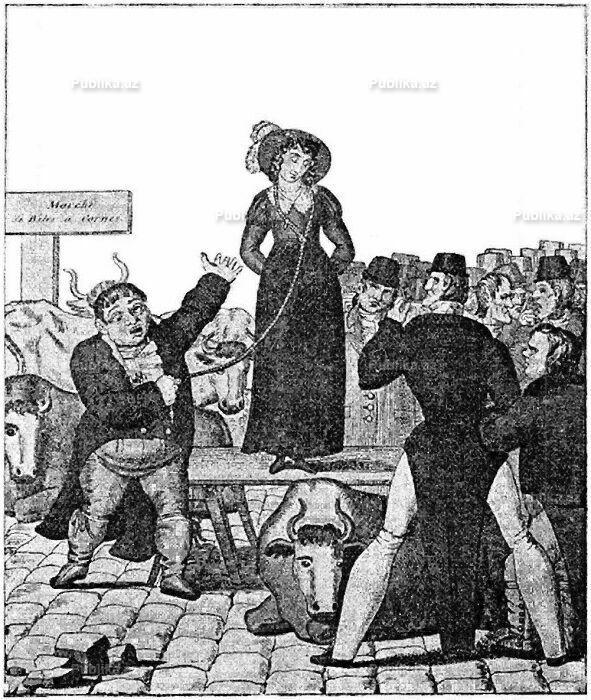 7News.az xəbər verir ki, ötən əsrlərdə də qadınların vəziyyəti heç də qibtə ediləcək səviyyədə olmayıb. Belə ki, ailə qurandan sonra onlar ərlərinin mülkiyyəti hesab edilirdi. Ərləri onlarla istədikləri kimi rəftar edir, hətta İngiltərədə qadın kişini bezdirəndən əri onu sata bilərdi. Bu adət yalnız orta əsrlərdə deyil, XVIII-XIX əsrlərdə də mövcud idi.