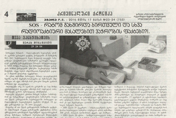 Batumi şəhərindəki Baş Konsulluğundan verilən məlumata görə, Acaristan Muxtar Respublikasinin nüfuzlu “Adjara P.S.” qəzetinin 23-24 (753) saylı 17 may 2016-cı il tarixli tirajında “SOS - nüvə və radioaktiv materiallarının satışı faktları nəyə görə tez-tez baş verir” başlığı altında gürcü dilində geniş məqalə dərc olunub.