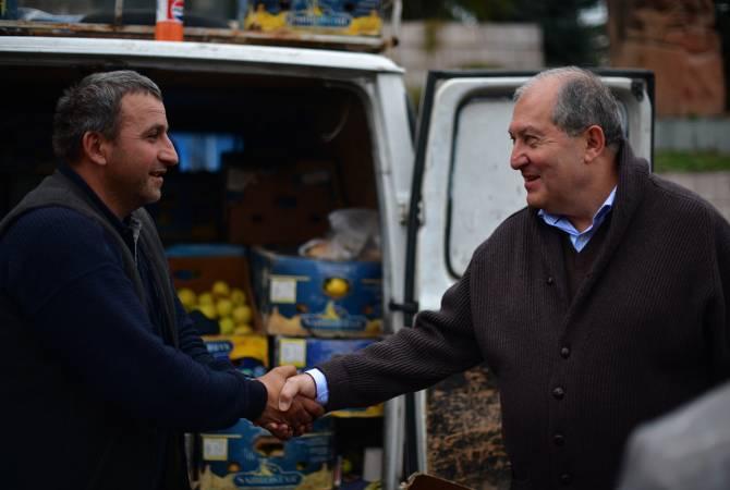 Erməni prezident Xankəndi küçələrini gəzib, işğal altındakı Azərbaycan torpaqlarında hazırda yaşayan ermənilərlə görüşüb, həmçinin, yarmarkaya baş çəkib, meyvələrdən yeyib.
