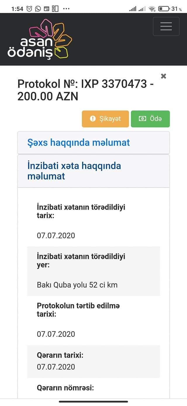 "Həm 102 xidmətinə, həm də Daxili İşlər Nazirliyinin rəhbərliyinə rəsmi şəkildə müraciət etmişəm. Ümid edirəm ki, bu yanlışlıq tezliklə aradan qaldırılacaq. Xəbərdarlıq etmədən icazəm ləğv olunur və cərimə olunuram. İkinci dəfə evdə olanda niyə cərimə yazırlar ki?"