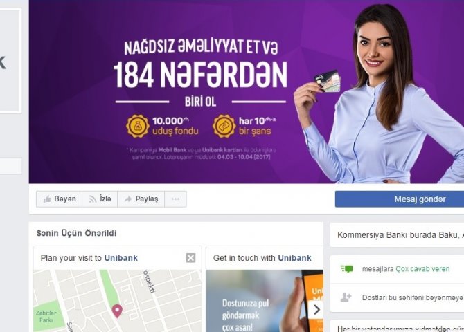 "Unibank"ın öz rəsmi "facebook" səhifəsində qiymətləndirməni açıq elan etməsi banka baha başa gəldi.