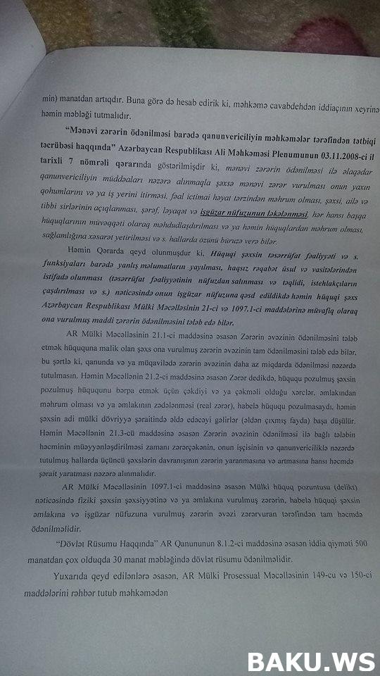 İddia ərizəsindən göründüyü kimi, supermarket vətəndaşdan 100 000 AZN-da cərimə almaq niyyətindədir.