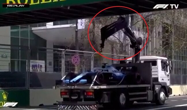 7News.Az report-a istinadla xəbər verir ki, qəza keçirən "Williams” komandasının pilotu Corc Rassellin bolidini aparan evakuasiya maşınının kranı yerüsütü piyada keçidinə ilişib. Nəticədə keçid zədələnib. Kran isə qrılıb və ondan axan yağ bolidin üzərinə tökülüb. Əraziyə ikinci evakuasiya maşını gəlib. Yekunda Rasselin bolidini boksa gətirmək mümkün olub.