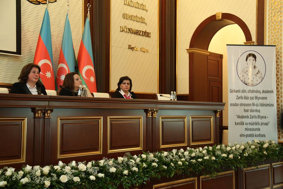 Gəncədə görkəmli oftalmoloq alim, akademik Zərifə Əliyevanın anadan olmasının 94-cü ildönümünə həsr olunmuş "Akademik Zərifə Əliyeva – kamillik və müdriklik zirvəsi” mövzusunda elmi - praktik konfrans keçirilib. Tədbirdə akademikin həyat və fəaliyyətinə həsr olunmuş sənədli film nümayiş olunub. Gəncə şəhər İcra Hakimiyyəti başçısının ictimai-siyasi və humanitar məsələlər üzrə müavini Sevda Qurbanəliyeva konfransı açıq elan edərək Zərifə xanım Əliyevanın keçdiyi zəngin və mənalı ömür yolundan danışıb. Gəncə şəhər Oftalmoloji Xəstəxananın baş həkimi Azər Məmmədov "Böyük, dahi insan”, Akademik Zərifə xanım Əliyeva adına Milli Oftalmologiya Mərkəzinin Buynuz qişanın cərrahiyyəsi və transplantasiya bölməsinin elmi işçisi Yazgül Abdıyeva "Akademik Zərifə xanım Əliyeva – görkəmli alim, əvəzsiz insan”, Gəncə şəhər Oftalmoloji Xəstəxananın həkim-oftalmoloqu Tələt Nəbiyev "Akademik Zərifə Əliyevanın elmi irsinin müasir dövrdə tədqiqi və tətbiqi məsələləri”, Gəncə şəhər Oftalmoloji Xəstəxananın həkim-oftalmoloqu Ruhiyyə Məmmədova "Akademik Zərifə Əliyeva – milli oftalmologiyanın banisidir”, 2 saylı şəhər xəstəxanasının baş həkimi Roza Qafarova "Akademik Zərifə xanım Əliyeva – ziyalı və qayğıkeş ana”, Gəncə şəhər Oftalmoloji Xəstəxananın həkim - anestezioloqu Sevil Allahverdiyeva "İstehsalat travmalarının müalicəsində böyük oftalmoloq alimin yenilikləri” mövzularında çıxış ediblər. Millət Vəkili Pərvin Kərimzadə və GDU-nun prorektoru Gülsüm Fətəliyeva çıxış edərək vurğulayıblar ki, Zərifə xanım Əliyeva müasir, müstəqil Azərbaycan dövlətinin memarı və qurucusu, bütün mənalı ömrünü Vətəninin və xalqının tərəqqisinə həsr etmiş dahi şəxsiyyətin - ümummilli lider Heydər Əliyevin vəfalı ömür-gün yoldaşı, sədaqətli dostu və etibarlı silahdaşı olub. Qeyd ediblər ki, Akademik Zərifə Əliyevanın alim kimi qazandığı böyük uğurlar Azərbaycan tibb elminin tarixində ayrıca bir mərhələ təşkil edir. Çıxışlarda bildirilib ki, oftalmoloq, akademik Zərifə xanım Əliyeva özünün xeyirxahlığı və humanistliyi, insanlara nur paylayan, onları işığa çıxaran bir ziyalı olub. O, vaxtilə Azərbaycanda geniş yayılmış traxomanın, dünya təcrübəsində birincilər sırasında peşə, xüsusilə kimya və elektron sənayelərində peşə fəaliyyəti ilə bağlı göz xəstəliklərinin öyrənilməsi, profilaktikası və müalicəsinə, habelə oftalmologiyanın müasir problemlərinə dair bir çox sanballı tədqiqatların, o cümlədən "Terapevtik oftalmologiya", "İridodiaqnostikanın əsasları" kimi nadir elmi əsərlərin müəlliflərindən biri, 12 monoqrafiya, dərslik və dərs vəsaitinin, 150-yə yaxın elmi işin, 1 ixtira və 12 səmərələşdirici təklifin müəllifidir. Konfransın sonunda Gəncə şəhərinin ictimai həyatında və şəhər əhalisinin sağlamlığının qorunmasında fərqlənən Akademik Zərifə xanım Əliyeva adına Milli Oftalmologiya Mərkəzinin Buynuz qişanın cərrahiyyəsi və transplantasiya bölməsinin elmi işçisi Yazgül Abdıyeva, Gəncə şəhər Oftalmoloji Xəstəxananın həkim-oftalmoloqları Tələt Nəbiyev, Ruhiyyə Məmmədova, Anarə Şəfiyeva və Gəncə şəhər Oftalmoloji Xəstəxananın həkim - anestezioloqu Sevil Allahverdiyeva Gəncə şəhər İcra Hakimiyyəti başçısının "Fəxri Fərman”ı ilə təltif edilib.