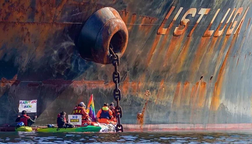 7NEWS.az xəbər verir ki, Beynəlxalq ətraf mühit təşkilatı Greenpeace üzvü olan bir qrup fəal Rusiya ilə Ukrayna arasında davam edən müharibəyə diqqət çəkmək və Rusiyaya etiraz etmək üçün özlərini Norveçə yanacaq daşıyan rus tankerinə zəncirləyiblər. Gəmi izləmə tətbiqi Marine Traffic tərəfindən paylaşılan məlumatlara görə, Ust Luga tankerinin paytaxt Oslodan təxminən 70 kilometr cənubda olan Exxon Mobil şirkətinin Slagen neft terminalı xaricində zəncirləndiyi öyrənildi.
