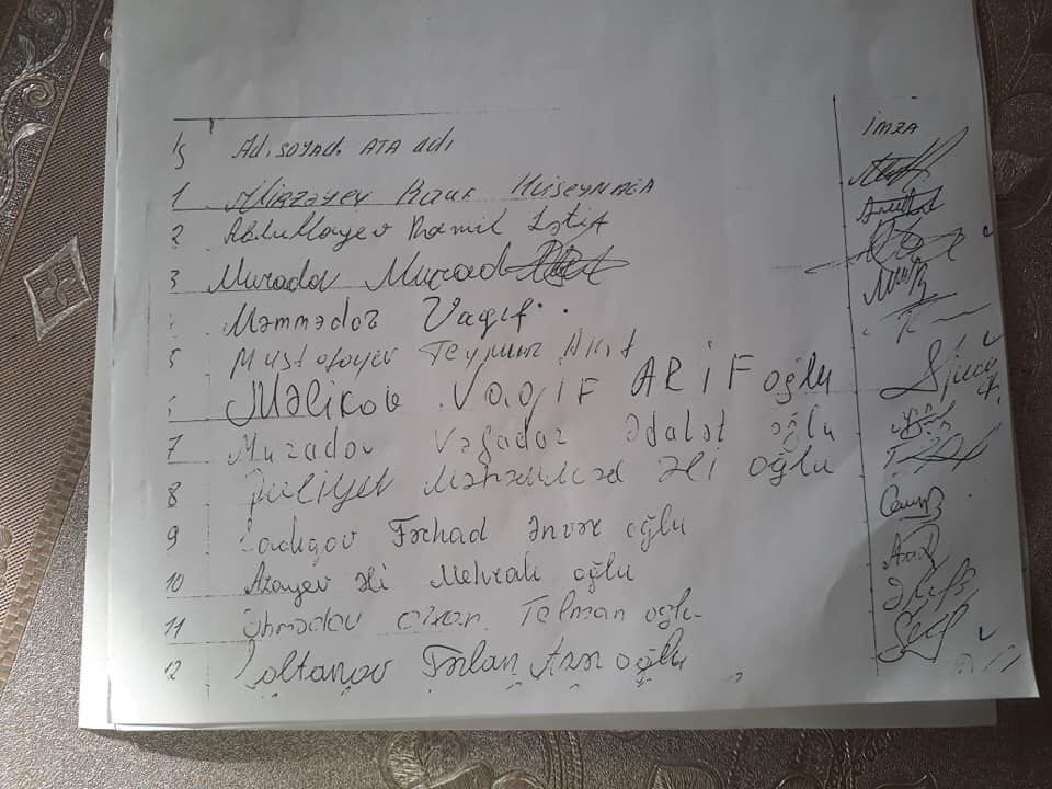 "Mən Mehdi Səlimzadədən haqqımı istədim. Maaşımı vermək əvəzinə saxta imza toplayıb işdən çıxardı. Siyahıda adı olan adamların kimliyi belə bilinmir, ünvanı da göstərilməyib. Şəxsiyyət vəsiqəsinin nömrəsi, ərizənin yazılma tarixi yoxdur. Ərizədə olan imzaların əksəriyyəti bir-birinə oxşayır. Su Kanalizasiya İdarəsinin mütəxəssisi var, adını çəkmək istəmirəm. O, mənə dedi ki, çayçıda 10-20 manat təklif edərək, sənin əleyhinə ərizə yazıb, burada adamlara qol çəkdirirdilər. Məhkəmə prosesində həmin ərizənin saxta olmasını diqqətə çatdırmışam. Həmin şikayətdə ad-soyadları yazılan adamların heç birini tanımıram. Hətta bir nəfər xarakterim barədə yazıb. Axı kağızda ad-soyadı göstərilən adamları tanımıramsa, onlar mənim xasiyyətimi necə biliblər? Bunlar hamısı Göyçay Rayon İcra Hakimiyyəti başçısının sözləridir. Hazırda məhkəmə prosesi davam edir. Mən məhkəmədə tərtib edilən akt üzrə 67 nəfərin çağrılaraq, dindirilməsini istədim. Hakim istəyimi nəzərə aldı. Lakin imzası olan adamlardam heç biri məhkəməyə gəlmədi. Kağızda da özünüz görürsünüz ki, imzalar bir-birinə oxşayır”.