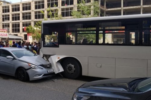 Bakıda zibil maşını avtobusa çırpıldı -