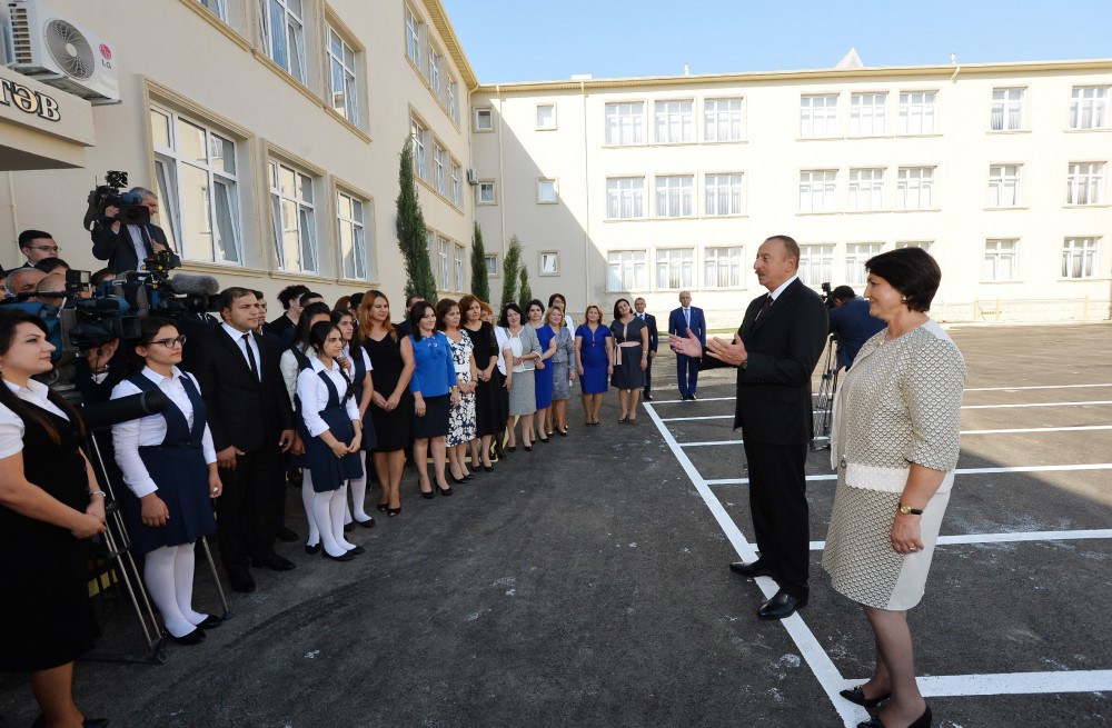 Son 4-5 il ərzində Bakı şəhərində məktəblərin mütləq əksəriyyəti əsaslı təmir olundu. Hələ ki, təmirsiz 17 məktəb var. Biz gələn il və 2018-ci ildə onları da təmir edəcəyik. Eyni zamanda, bəzi məktəblərdə uşaqlar iki növbədə oxuyurlar, o cümlədən bu məktəbdə. Ona görə, bizim məqsədimiz ondan ibarətdir ki, bütün məktəblər birnövbəli fəaliyyətə keçsinlər. Əlbəttə, buna nail olmaq üçün ya yeni korpuslar, ya da yeni məktəblər tikilməlidir, o cümlədən bu ərazidə. Düzdür, burada yerlə bağlı problemlər var. Ancaq yerli icra hakimiyyətinə göstəriş verdim ki, baxsınlar, araşdırsınlar, bu ərazidə harada mümkündürsə orada yeni məktəb tikilsin. Beləliklə, Bakı şəhərinin məktəblərinin maddi-texniki bazası tam yeniləşəcək.