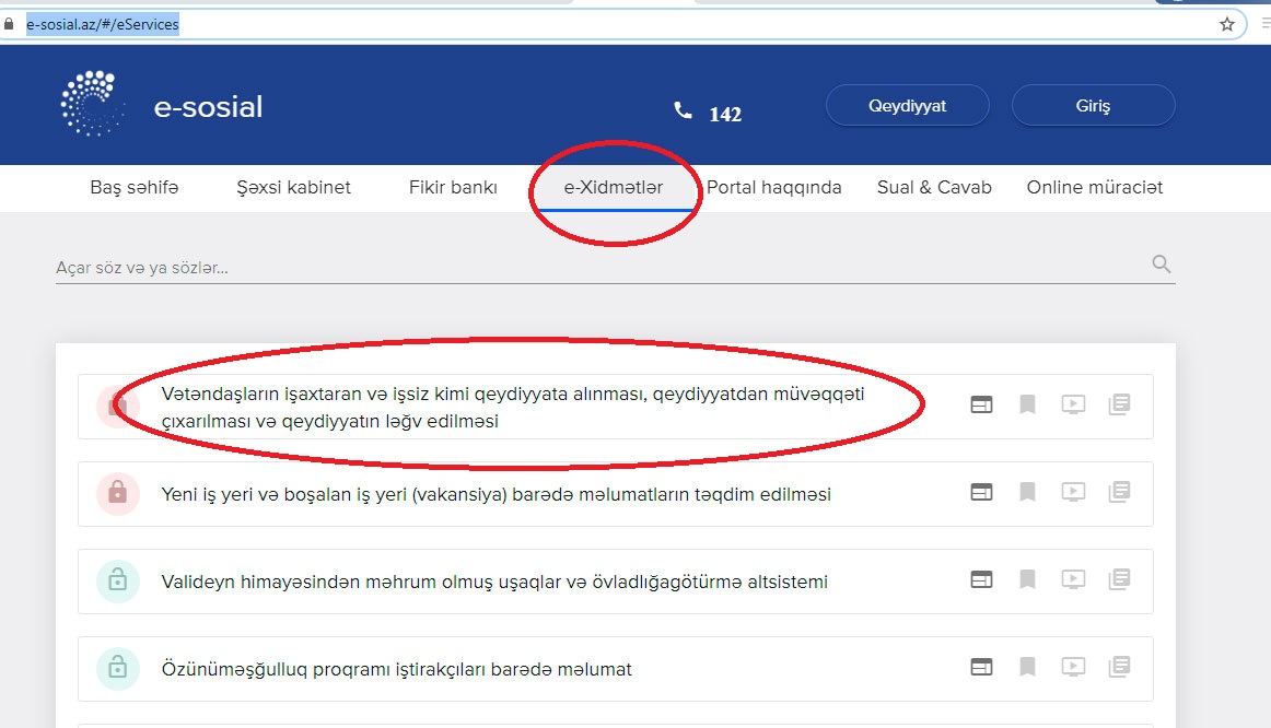 2. Daha sonra, e-xidmətlər bölməsini açırsız.