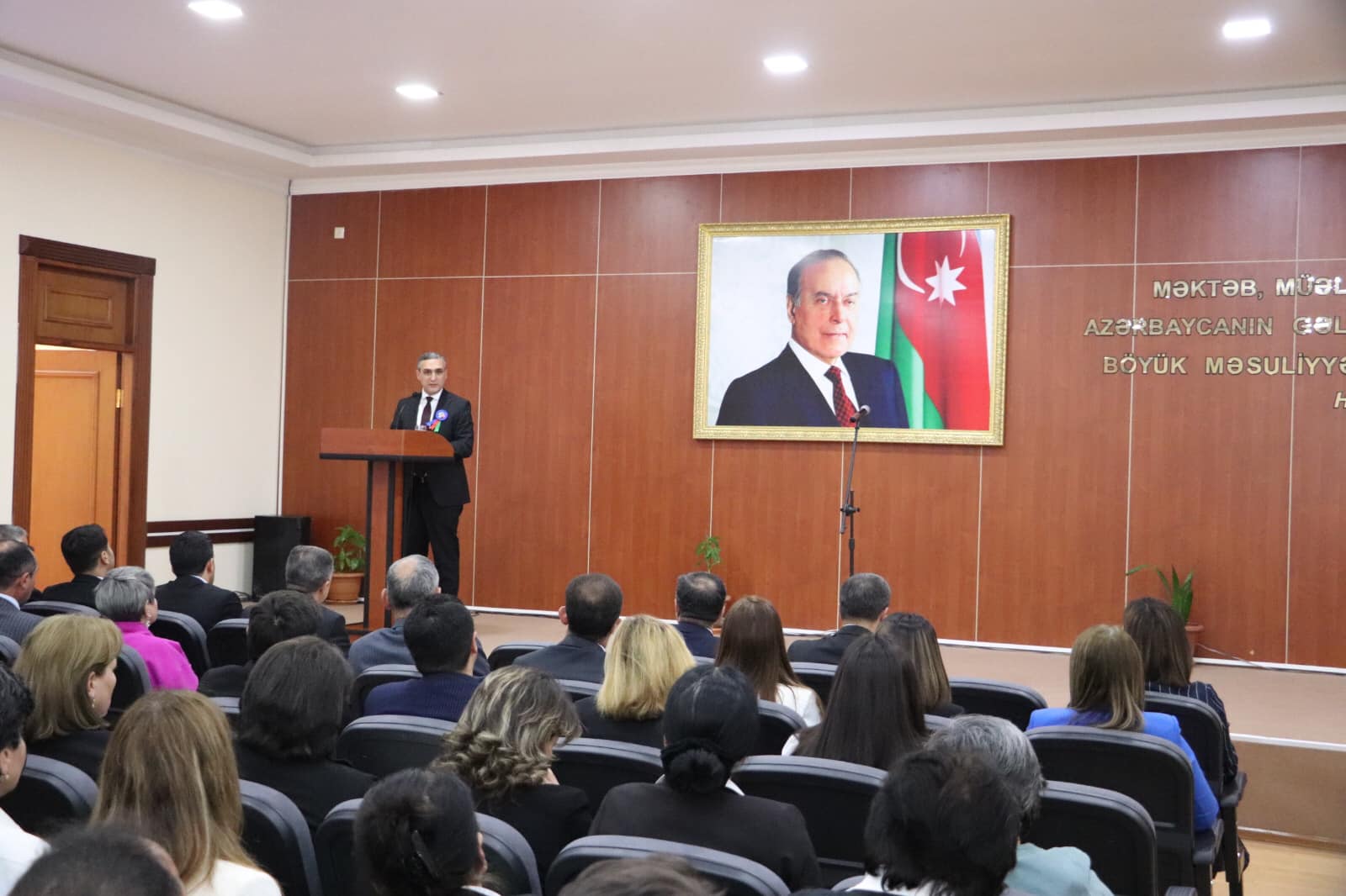Heydər Əliyevin Azərbaycanda elmin və təhsilin inkişafına verdiyi töhfələrdən danışan MDU-nun rektoru Ş.Bayramov Ümummilli Liderin bu istiqamətdə həyata keçirdiyi sistemli islahatlardan bəhs edib. Ulu Öndərin Azərbaycan gəncliyinin milli vətənpərvərlik ruhunda tərbiyəsində əvəzsiz rolunu vurğulayan Ş.Bayramov dövlətinə və xalqına bağlı olan vətəndaş yetişdirilməsində təhsilin önəmini diqqətə çatdırıb. Ş.Bayramov əbədiyaşar liderin zəngin irsinin davamlı öyrənilməsinin və gənc nəsil arasında təbliğ edilməsinin təhsil işçilərinin əsas vəzifələrindən olmasını bildirib.