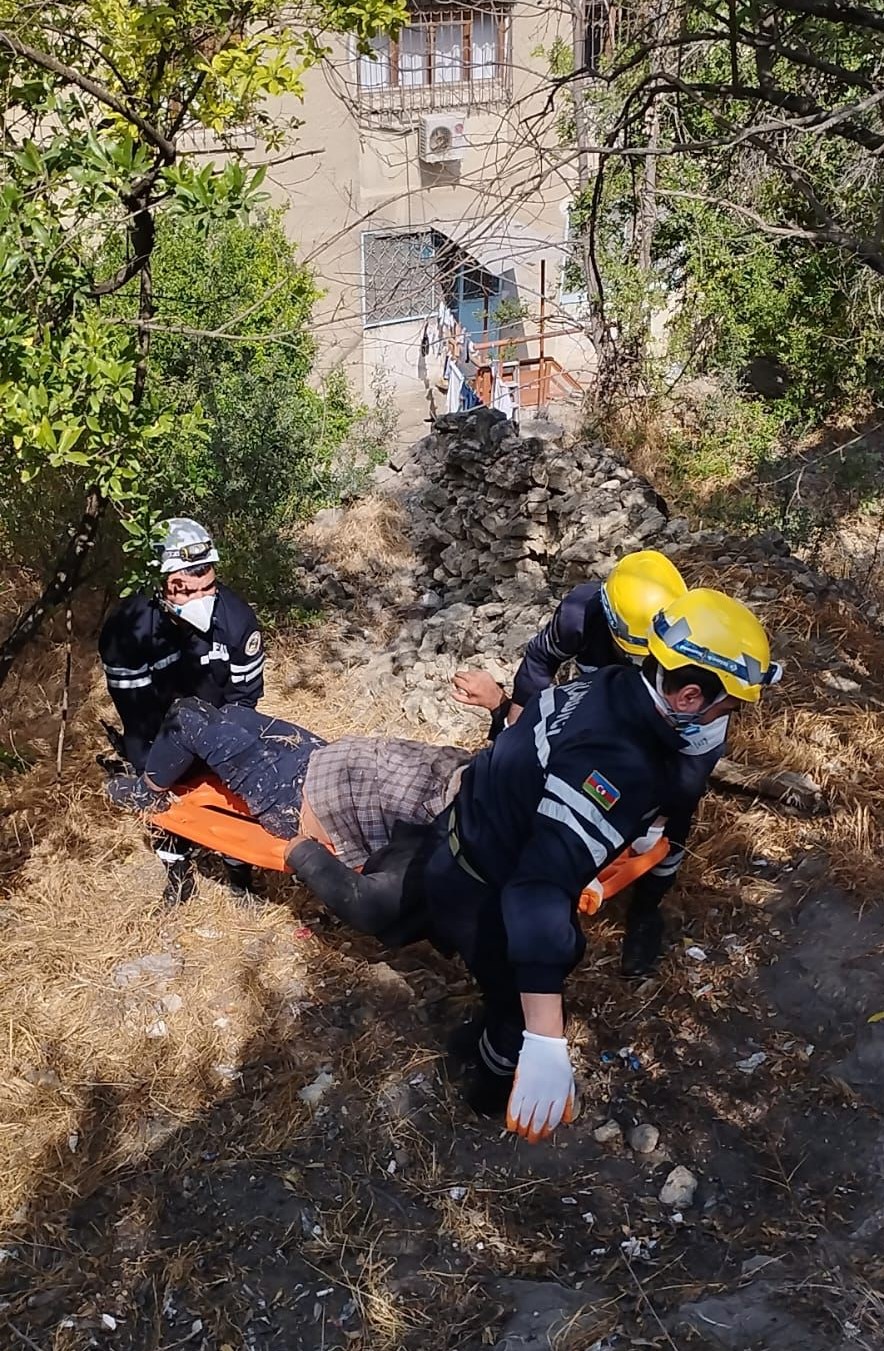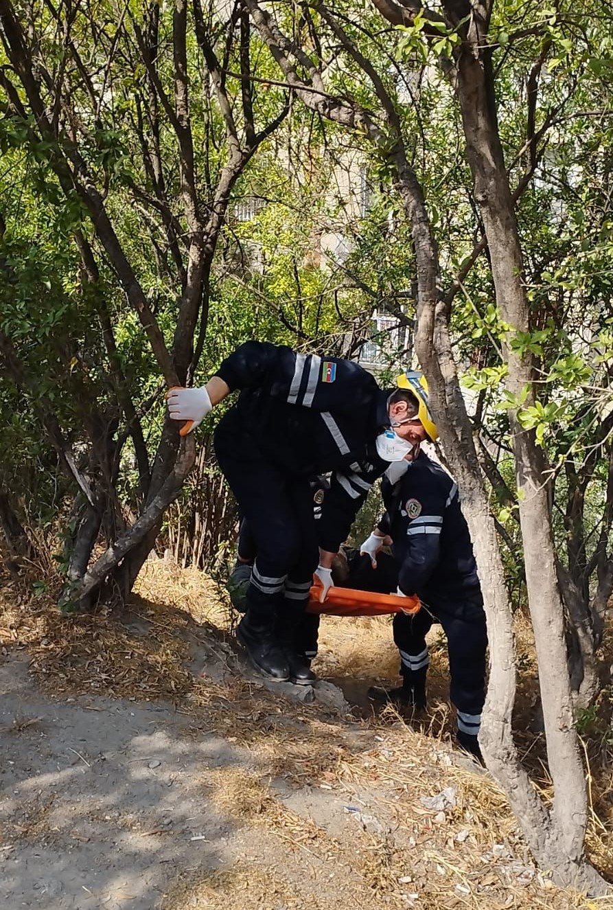 Hadisə yerində əməliyyat şəraiti qiymətləndirilərkən 1970-ci il təvəllüdlü Roma Qarayevin hündürlükdən yıxılması səbəbindən müxtəlif bədən xəsarətləri alaraq çökək ərazidə köməksiz vəziyyətdə qaldığı müəyyən edilib.