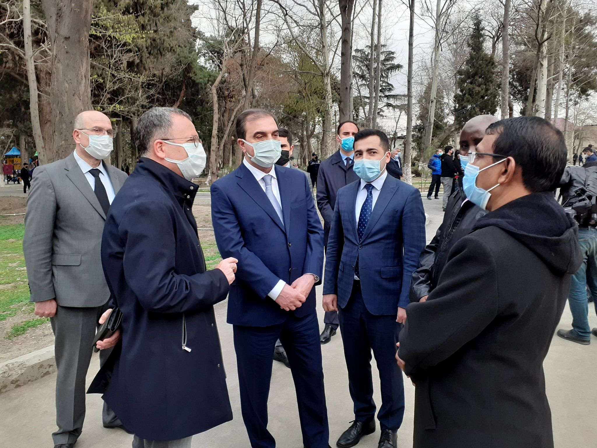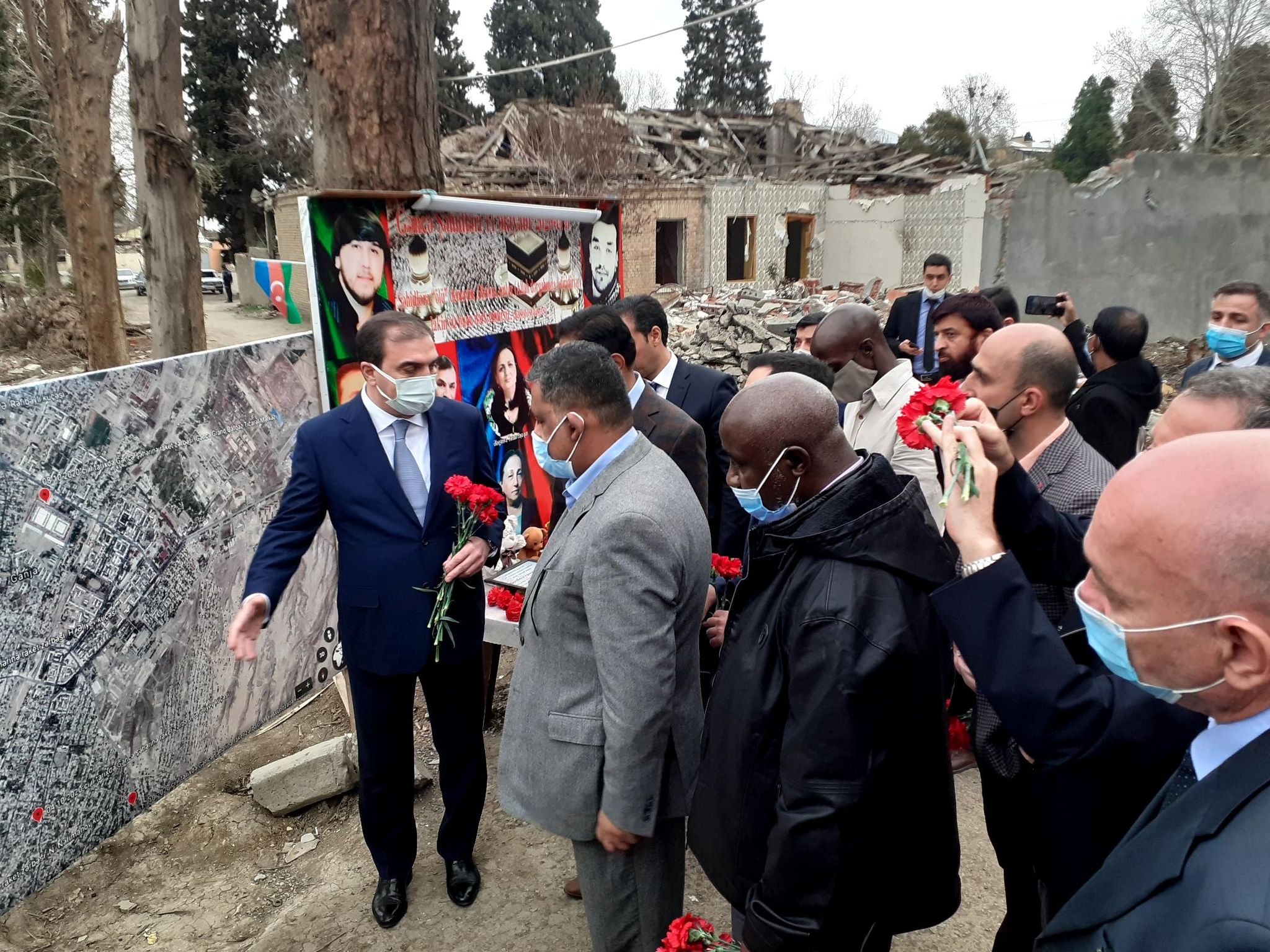 İslam Əməkdaşlıq Təşkilatının Ermənistanın Azərbaycana qarşı təcavüzünə dair Təmas Qrupuna daxil olan ölkələrin daimi nümayəndələrinin ölkəmizə səfəri başlayıb. 7NEWS.az-ın bölgə müxbirinin verdiyi məlumata əsasən səfər çərçivəsində diplomat heyyəti Gəncə şəhərində olub.Səfər çərçivəsində nümayənfə heyyəti Vətən müharibəsi zamanı işğalçı Ermənistan ordusu tərəfindən dinc sakinlərin yaşadığı ərazilərə atılan balistik raketlərlə vurulan yaşayış massivlərinə baxış keçirib.Bir daha bildirilib ki,İƏT olaraq daima Azərbaycan xalqının yanında olublar və hər zaman Azərbaycanın haqlı davasını istər Birləşmiş Millətlər Təşkilatında (BMT), istərsədə digər beynalxalq qrumlarda müdaiə ediblər. Məlumat üçün bildirək ki, Gəncə və Ağdam şəhərlərinə səfər zamanı İƏT 9 ölkəsindən 15 nümayəndə heyyəti gəlib.