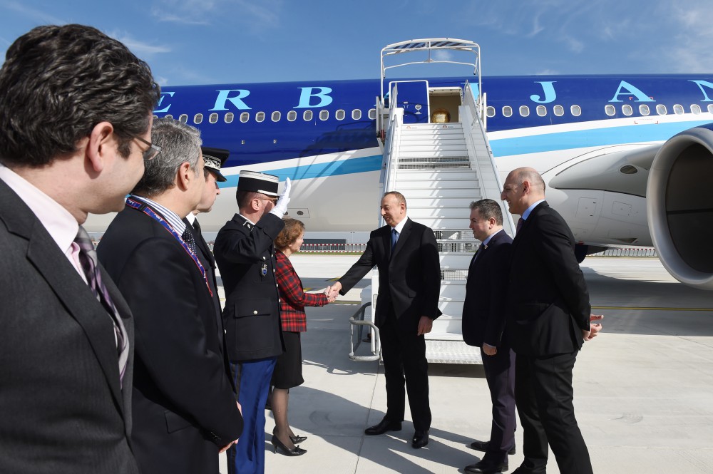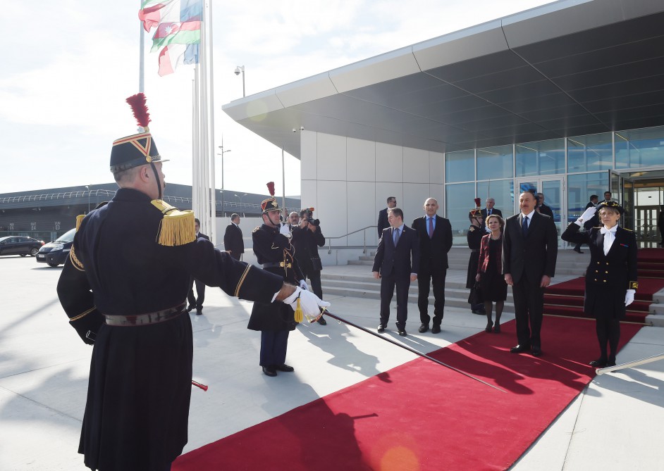 Azərbaycan Prezidentini Fransanın yüksək vəzifəli rəsmi şəxsləri qarşılayıblar.