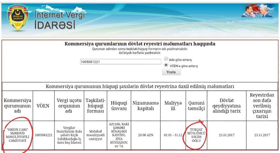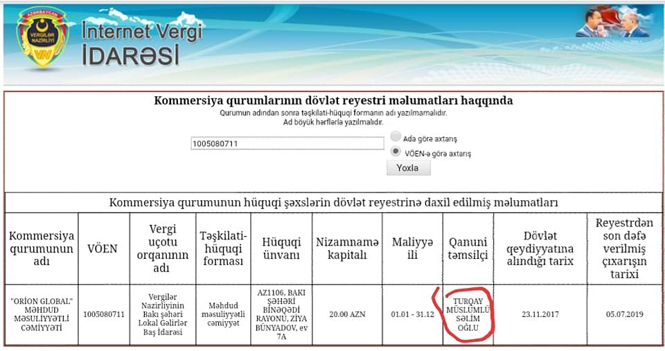 4."ORİON CREATİVE SOLUTİONS" MƏHDUD MƏSULİYYƏTLİ CƏMİYYƏTİ əvvəlcə Turqay Müslümlünün adına qeydiyyatdan keçirilsə də, sonradan Səlim Müslümovun digər oğlu ASİM MÜSLÜMLÜ SƏLİM oğlunun adına rəsmiləşdirilib.