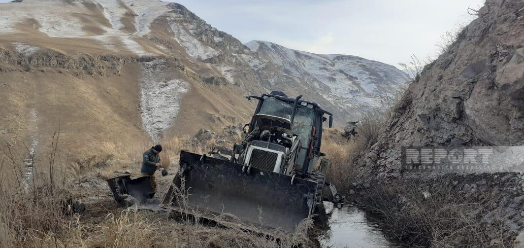 Report-un Kəlbəcərə ezam olunmuş əməkdaşı traktor və hərbi avtomobilin mina partlayışından sonrakı vəziyyətini əks etdirən fotolar çəkib.