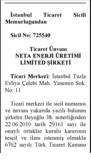 "18 fevral 2010-cu il tarixdə təsis olunan və nizamnamə kapitalı 50 min lirə təşkil edən şirkətin 45 min lirəlik 1800 səhmi Tale Heydərova, 5 min lirəlik 200 səhmi isə Türkiyə vətəndaşı Hasan Dündara aiddir.Şirkətin hüquqi ünvanı: Evliya Çelebi Mah. Yasemin Sok. No:11 Tuzla, İstanbul”.