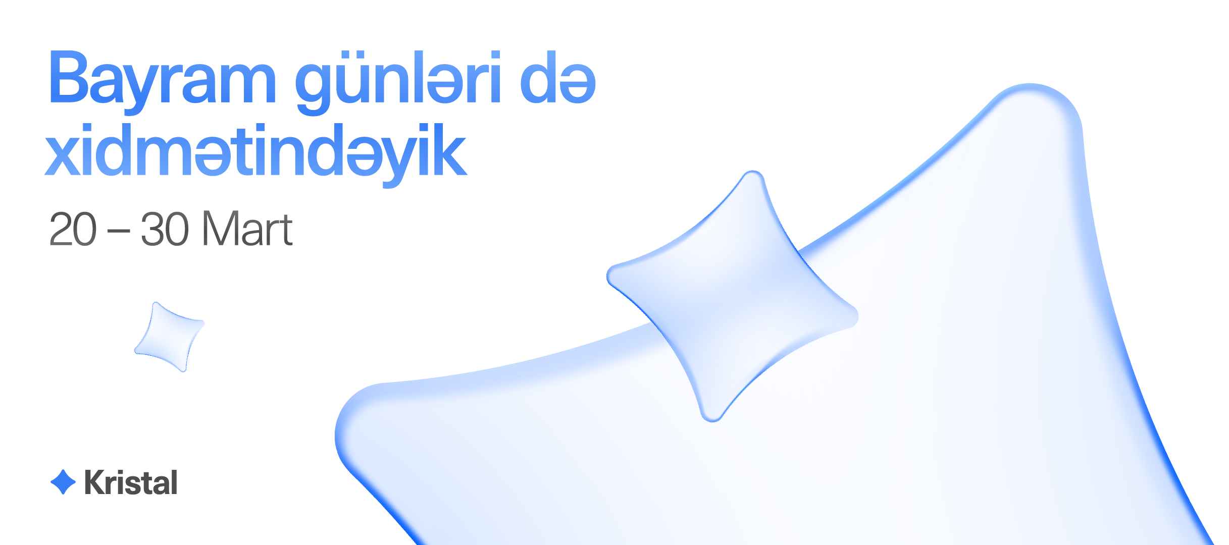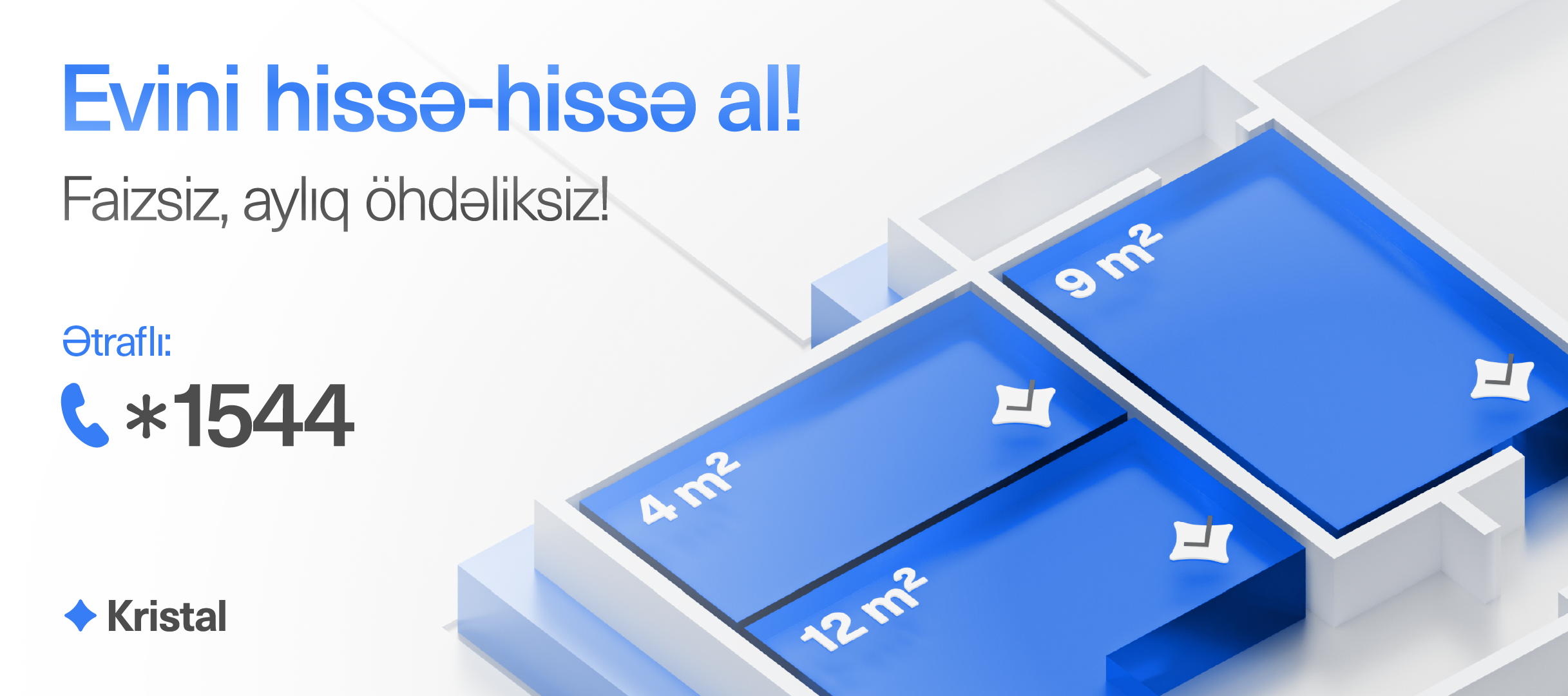 Bayram günləri mənzil seçimi üçün ən doğru vaxtlardan biridir. Satış ofisləri açıqdır və seçim imkanları genişdir. Ətraflı məlumat almaq və ya uyğun mənzili seçmək üçün "Kristal”ın satış ofislərinə yaxınlaşa və ya *1544qısa nömrəsi ilə əlaqə saxlaya bilərsən.
